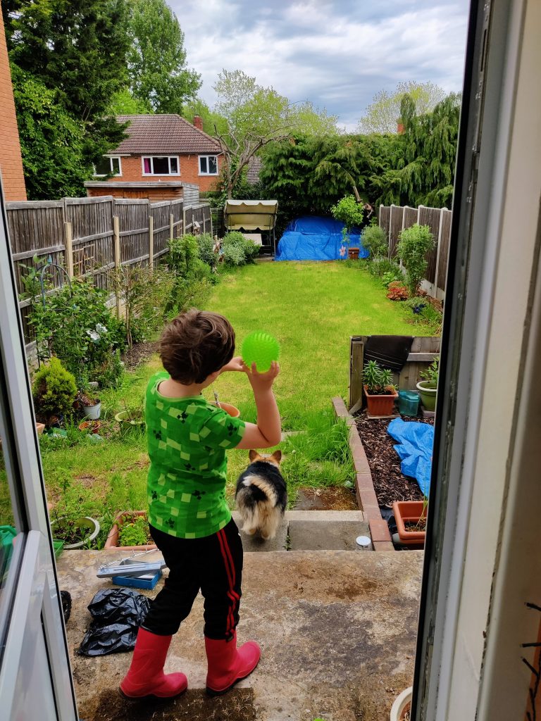At lunch time there was a little play in the garden with his ball.